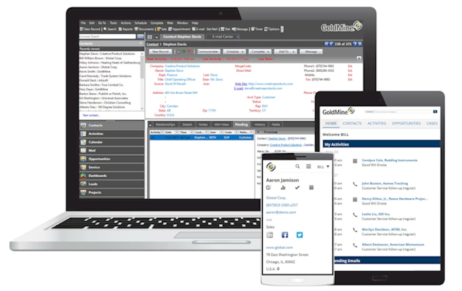 GoldMine Premium, is an award winning CRM solution. It is proven and easy to use, allowing you to focus on building long-lasting customer relationships. Learn more: